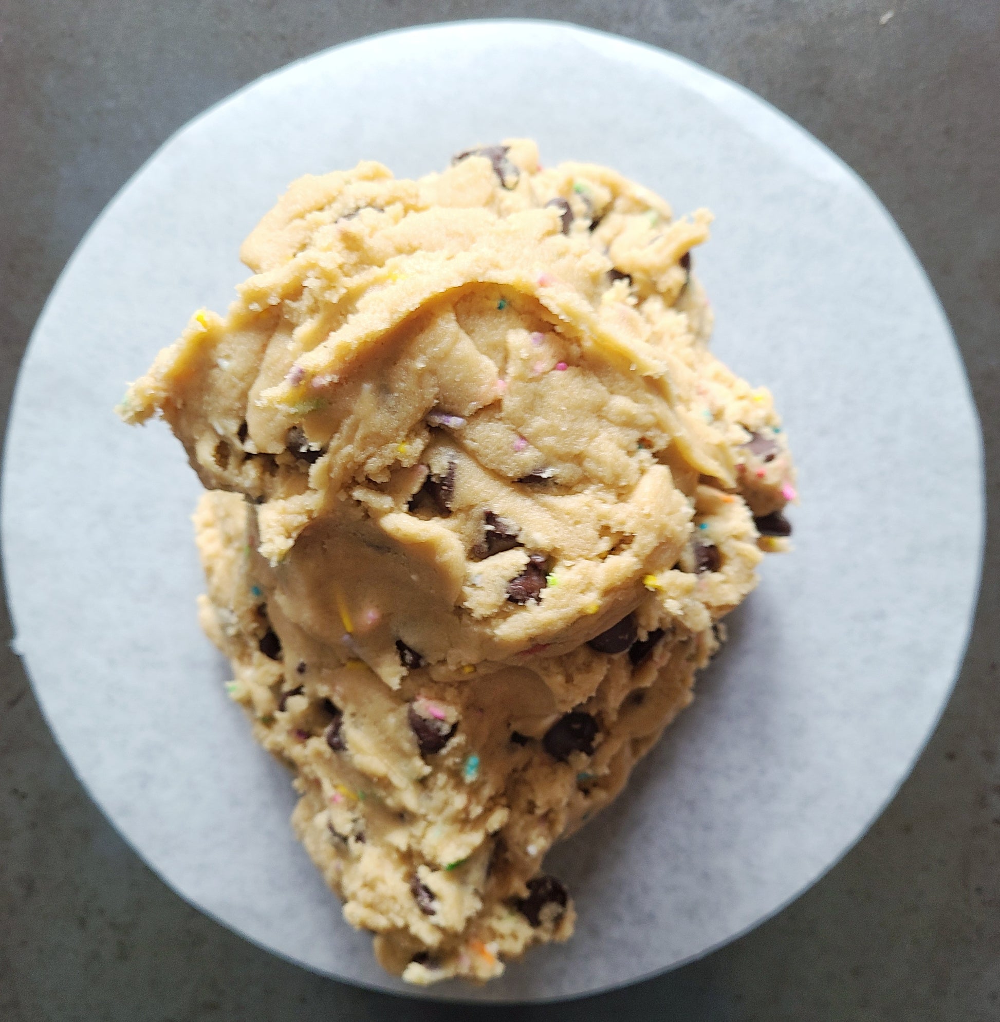 Ingredients: Flour, Sugar, Brown Sugar, Chocolate (Sprinkles, Oreo Pieces Optional) Artificial Vanilla, Baking Powder, Baking Soda, Salt