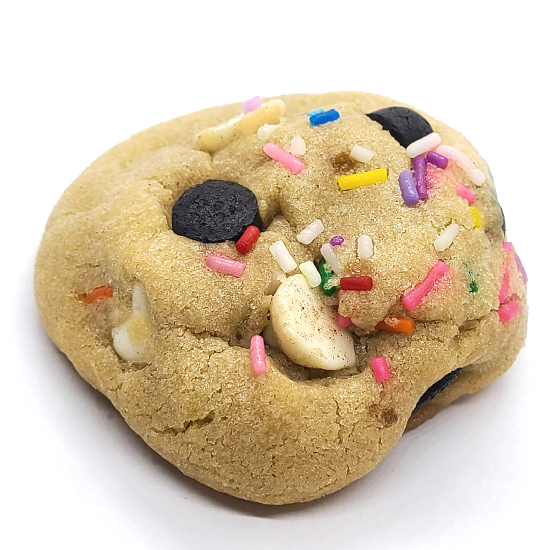 Ingredients: Flour, Sugar, Brown Sugar, Chocolate (Oreo Pieces), (Cocoa Powder- Chocolate Dough) Sprinkles, Artificial Vanilla, Baking Powder, Baking Soda, Salt
