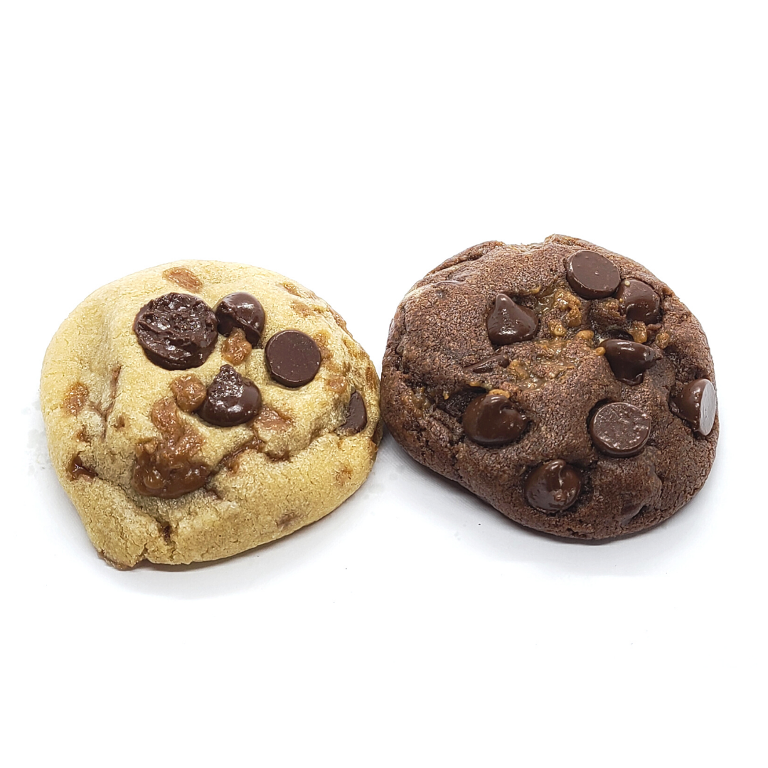Ingredients: Flour, Sugar, Brown Sugar, Chocolate (Toffee, Semi-Sweet Chocolate) (Cocoa Powder- Chocolate Dough) Artificial Vanilla, Baking Powder, Baking Soda, Salt