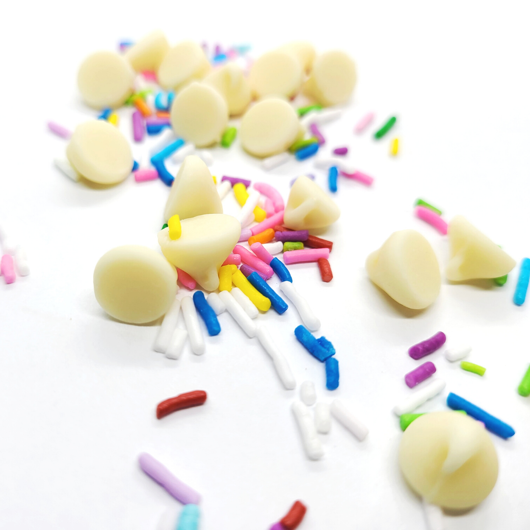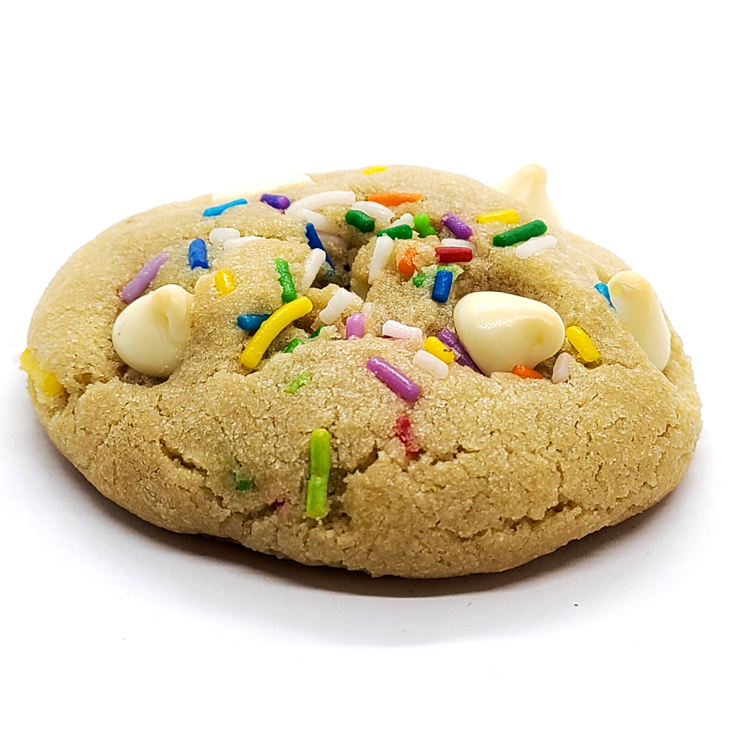Ingredients: Flour, Sugar, Brown Sugar, Chocolate (White Chocolate), (Cocoa Powder- Chocolate Dough) Sprinkles, Artificial Vanilla, Baking Powder, Baking Soda, Salt